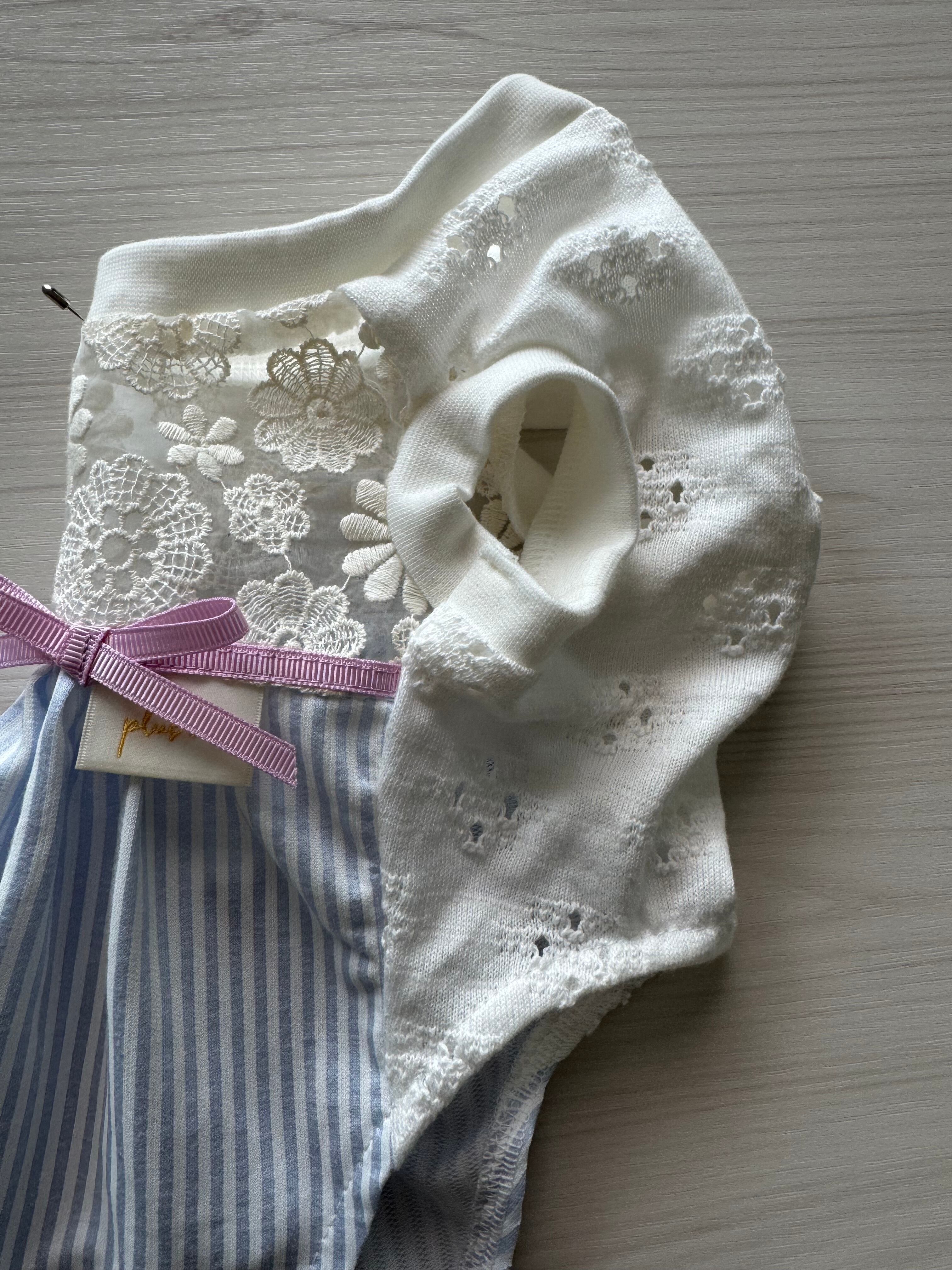 このワンピースは、お腹側にニットレースを採用しているため、着せやすさも抜群です。普段使いはもちろん、お出かけや特別なイベントにもピッタリの一着です!さらに、別売りのセーラーカラーを合わせることで、コーディネートの幅を広げ、より一層可愛らしさを引き立てます。