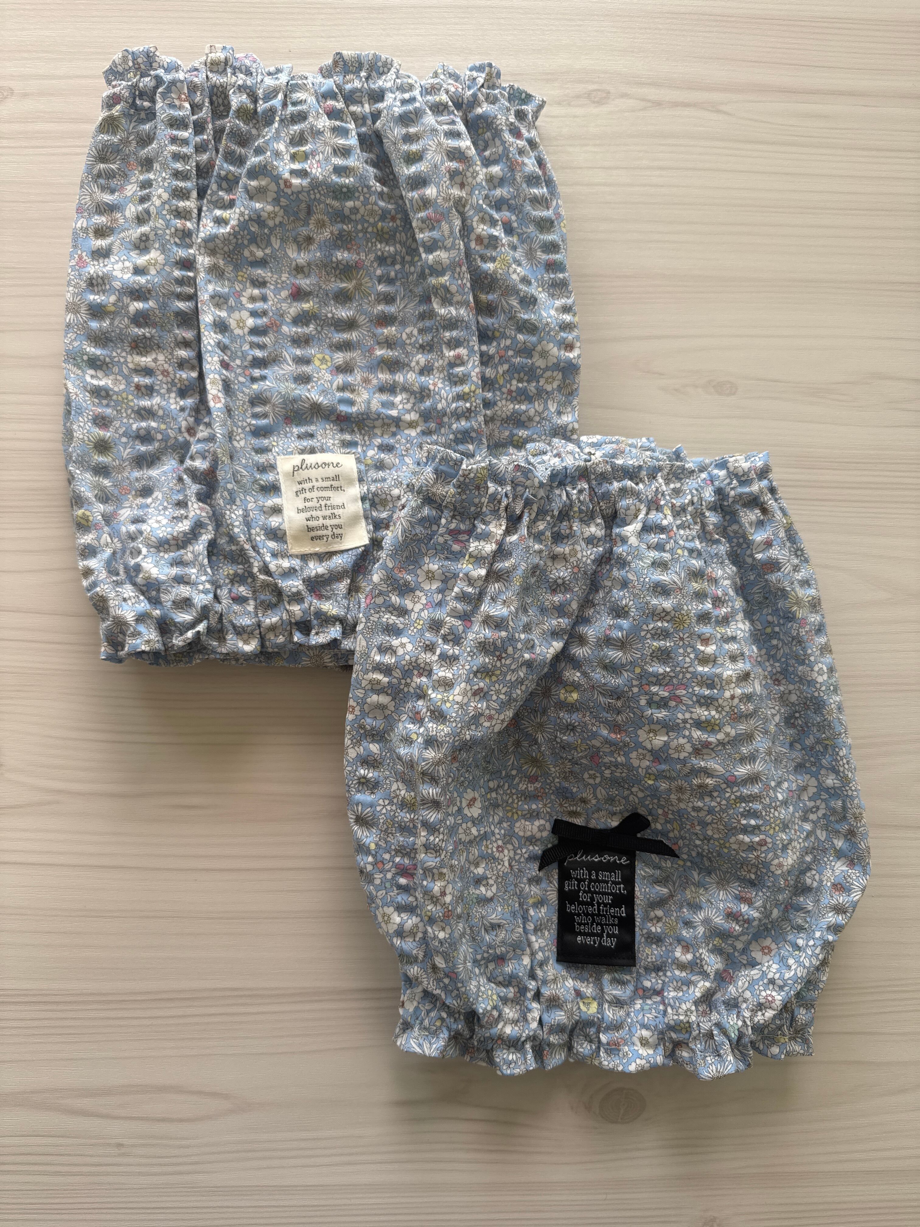 小花柄は見た目もキュートで、どんなシーンにもぴったり。お耳をすっぽりと包み込むことで、食事の際の汚れやお散歩中の汚れをしっかりガードします。さらに、ゴムの入れ替えが可能なので、使用する子に合わせて調整できるのも嬉しいポイントです。